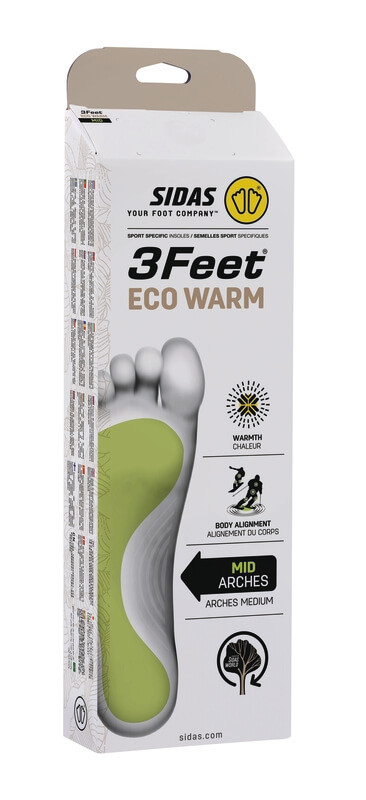 A SIDAS 3Feet Eco Warm Mid egy prémium minőségű, anatómiai kialakítású talpbetét, amelyet közepes boltozatú lábak számára fejlesztettek. A Sidas ikonikus 3 Feet koncepciója lehetővé teszi, hogy a talpbetét a lábboltozat típusához igazodva biztosítson optimális alátámasztást és komfortot – ez különösen fontos a síelés során, ahol a terhelés és a mozgástartomány korlátozott.